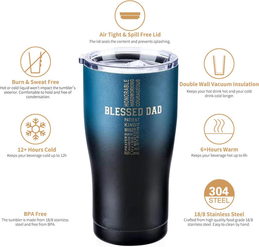 Dad Tumbler - Blessed Dad - Dad Gifts from Daughter Son Wife - 20 Oz Stainless Steel Coffee Travel Mug for Men - Christian Gifts for Men - Best Dad Ever Birthday Gifts for Men Husband (Midnight)