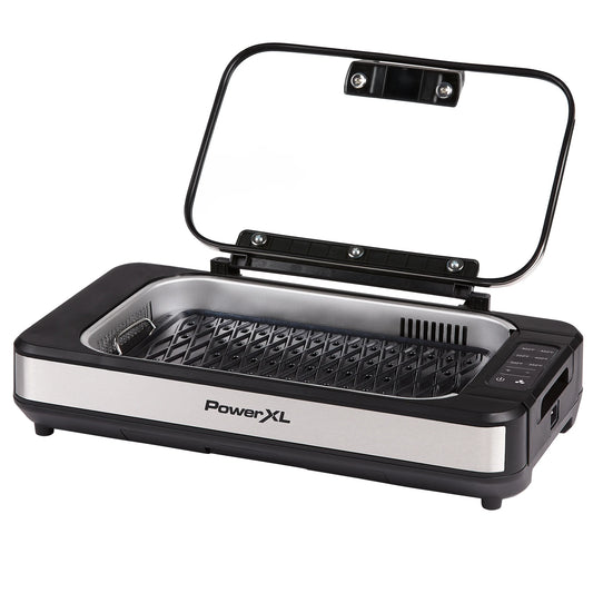 Power XL Smokeless Grill Elite plus Indoor Electric Grill with Tempered Glass Lid, Non-Stick, Black